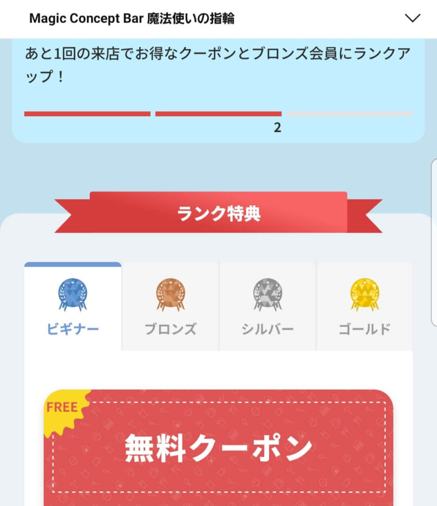 ご来店頂く度にランクが上がるシステムになります。